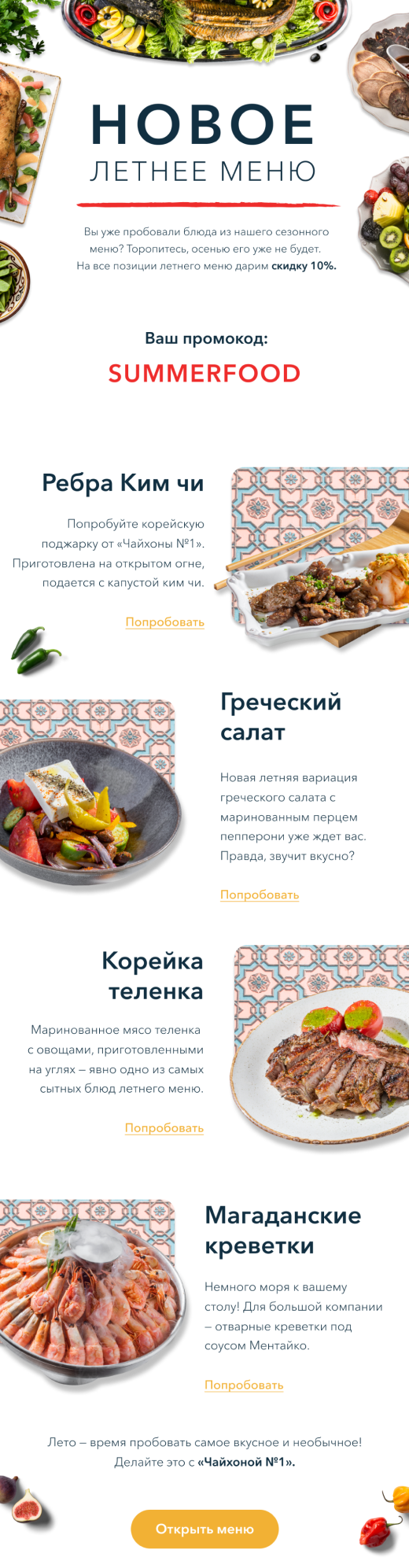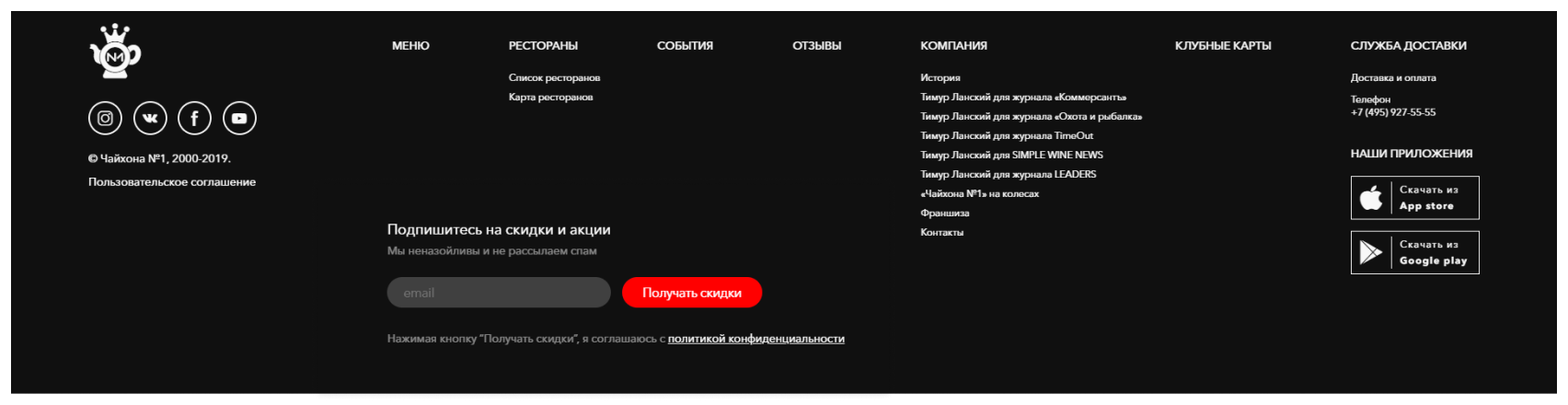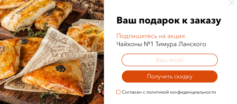 Мы задействовали статичные и динамичные формы подписки. Статичная закреплена в определенной части страницы. Ее плюс в том, что посетитель сайта может подписаться через эту форму в любой момент. Находится она, как правило, сбоку или в конце страницы — как у «Чайхоны № 1».