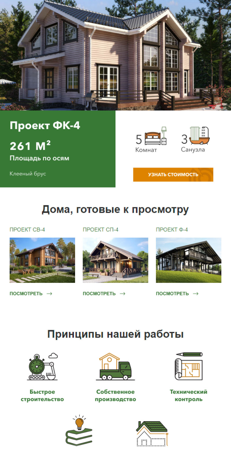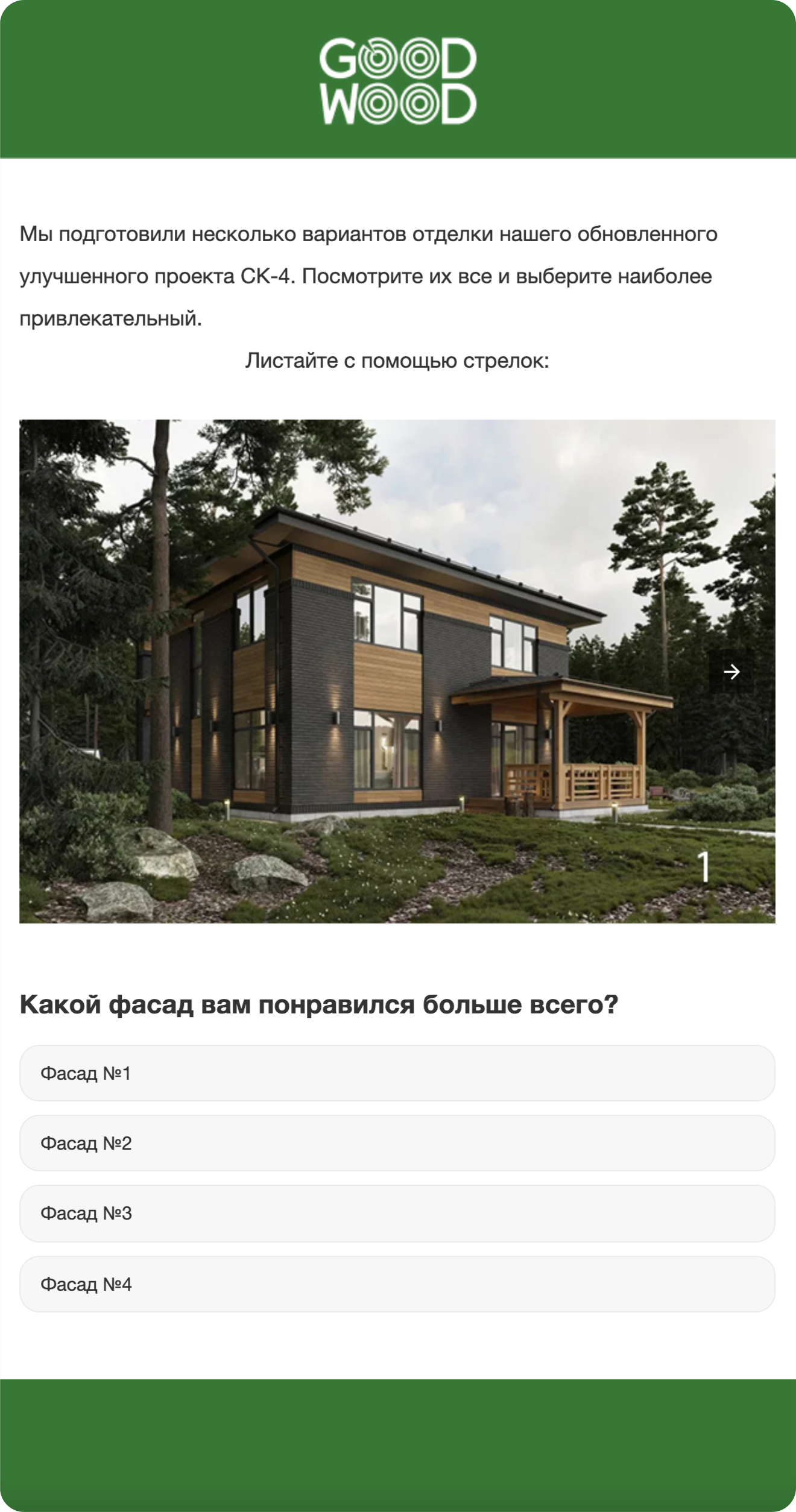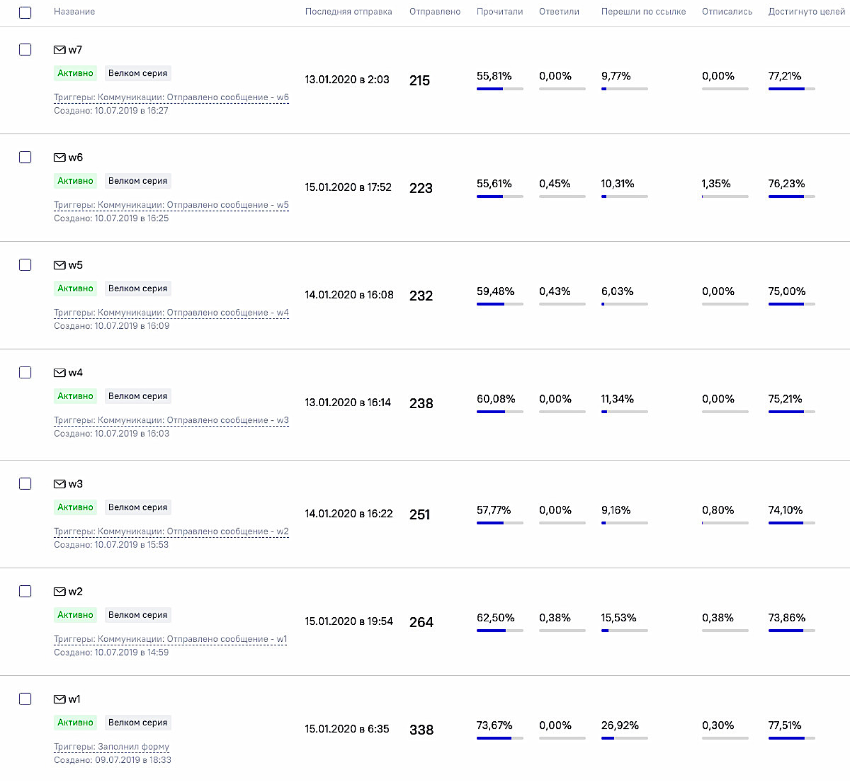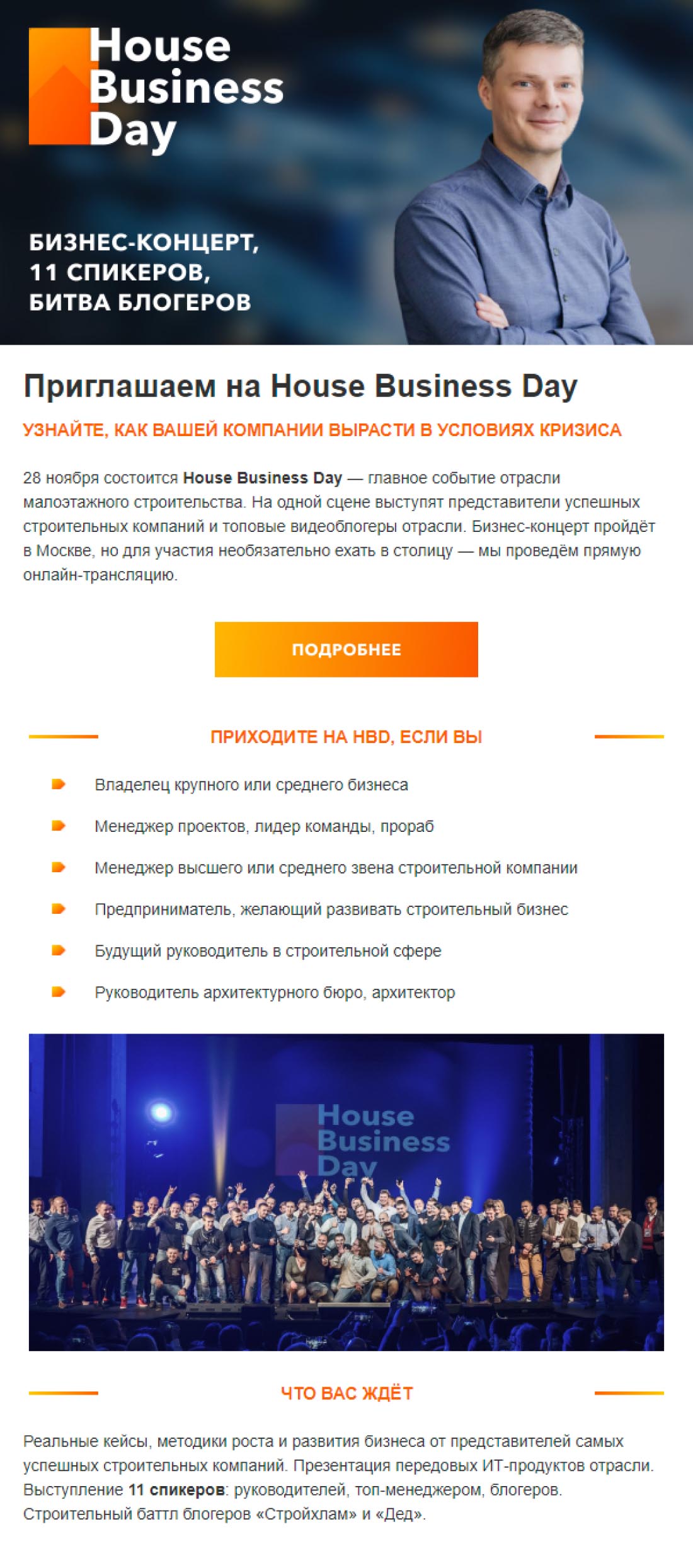 Для тех, кто связался с менеджерами, разработали дополнительные письма. Например, клиент общался с менеджером, но не решился на покупку дома. Подготовили триггерные сообщения для всех этапов воронки продаж: обратился в компанию, встреча назначена, оставил заявку, получил коммерческое предложение и т. д. Запустили письма, которые срабатывали на триггеры «Встреча состоялась» (в них убеждали, что не стоит тянуть с покупкой, потому что цены могут вырасти, а обустройство дома — затянуться) и «Принимают решение» (обосновали стоимость, объяснили, что работа действительно качественная).