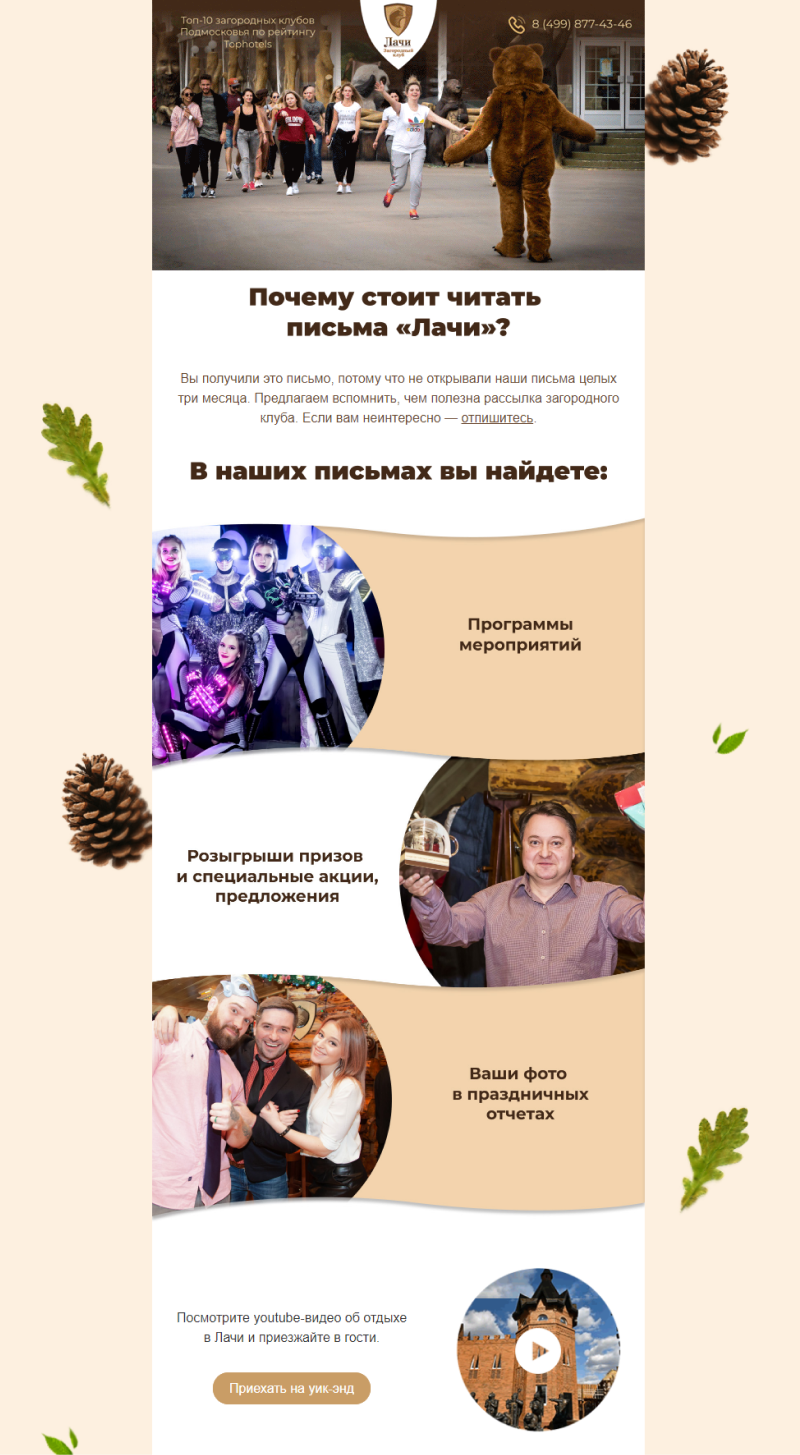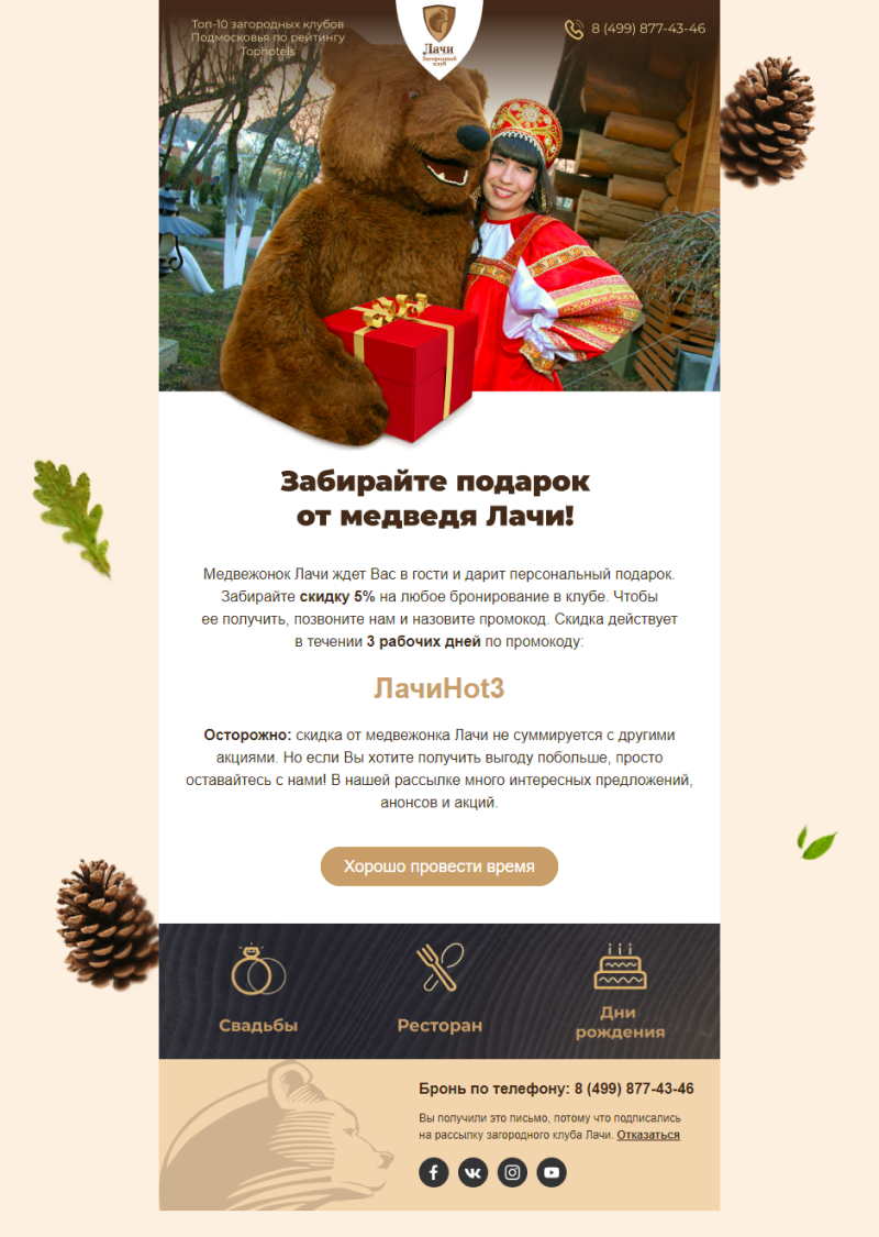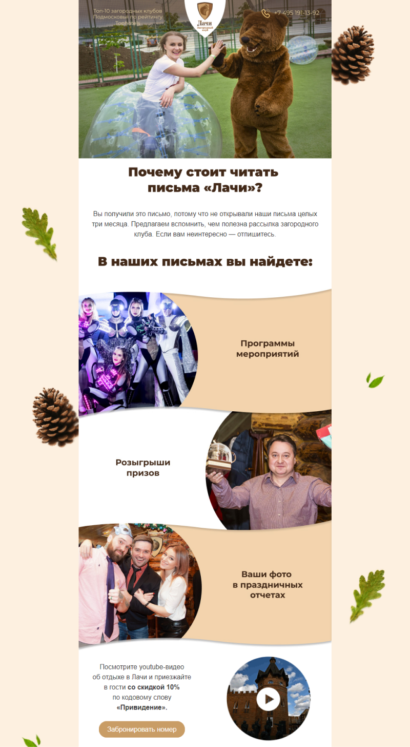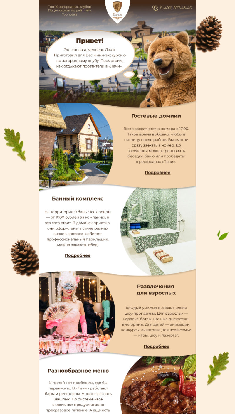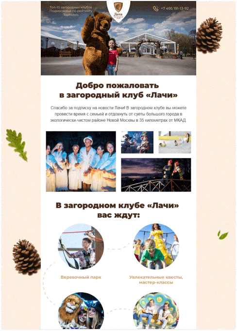 Что еще планируем внедрить для клиента? Добавить опросы о качестве обслуживания и о пользе контента в письмах. Доработать уникальный стиль рассылки, сделав медведя Лачи центральным персонажем в письмах. Персонализировать контент, составить письма-игры со скидочными промокодами. Все это позволит поддерживать высокую открываемость и кликабельность писем.