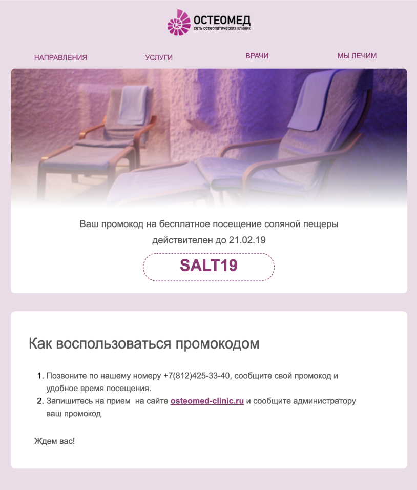 По данным аналитики, самым частым поисковым запросом, по которому пользователи попадали на сайт, было посещение соляной пещеры. Чтобы привлечь максимум новых подписчиков, установили поп-ап на эту страницу.
