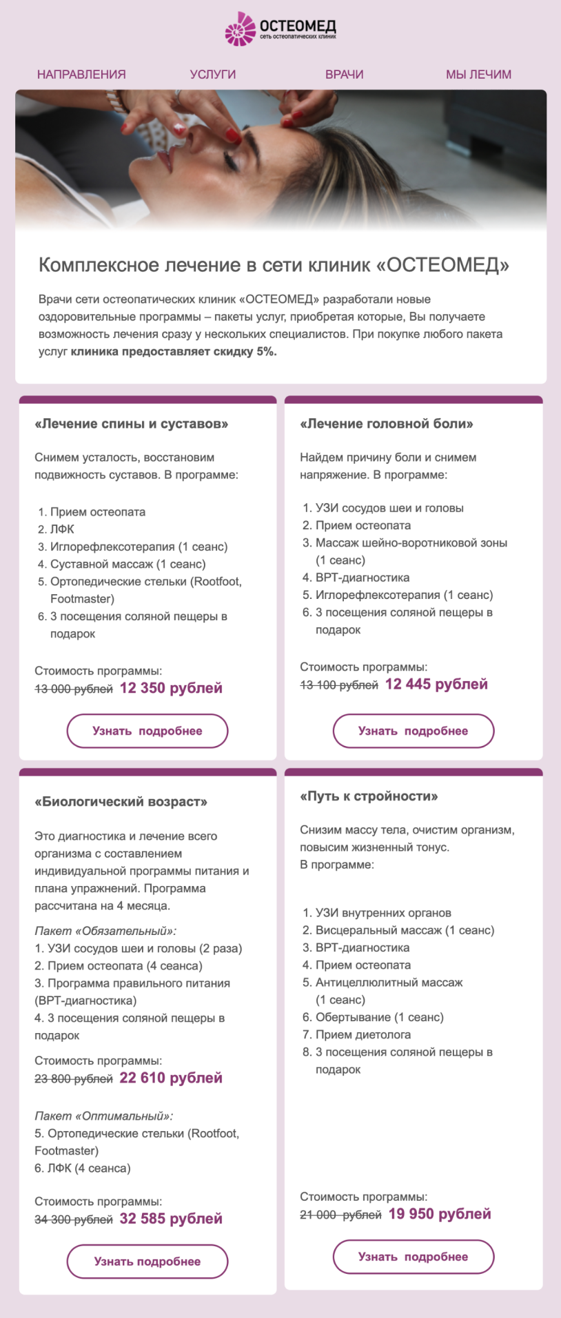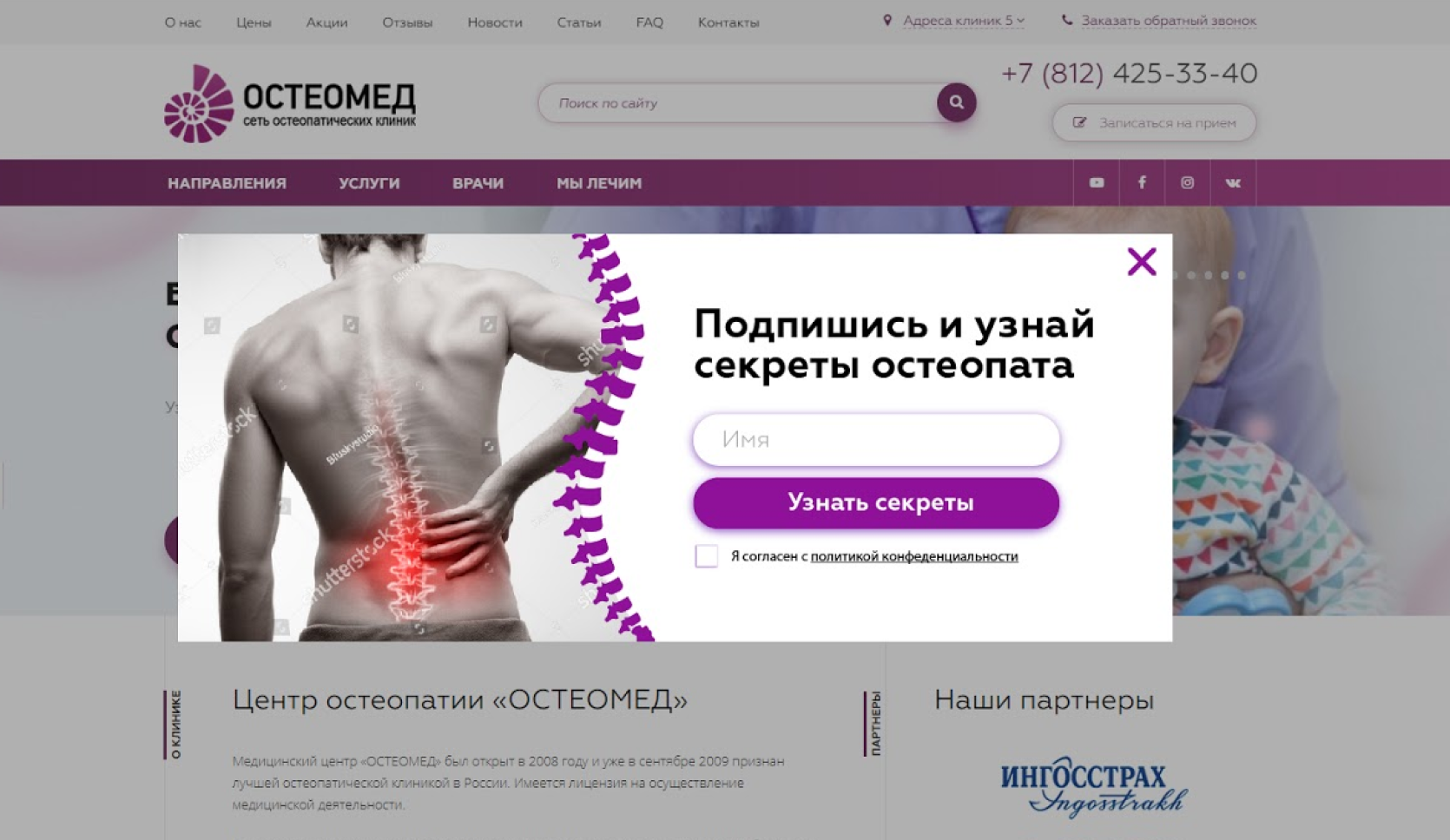 Динамичные окна на сайте «Остеомеда» собрали в 10 раз больше адресов, чем статичная форма. Конверсия поп-апа составила от 1 до 3% в зависимости от потока трафика на сайт.